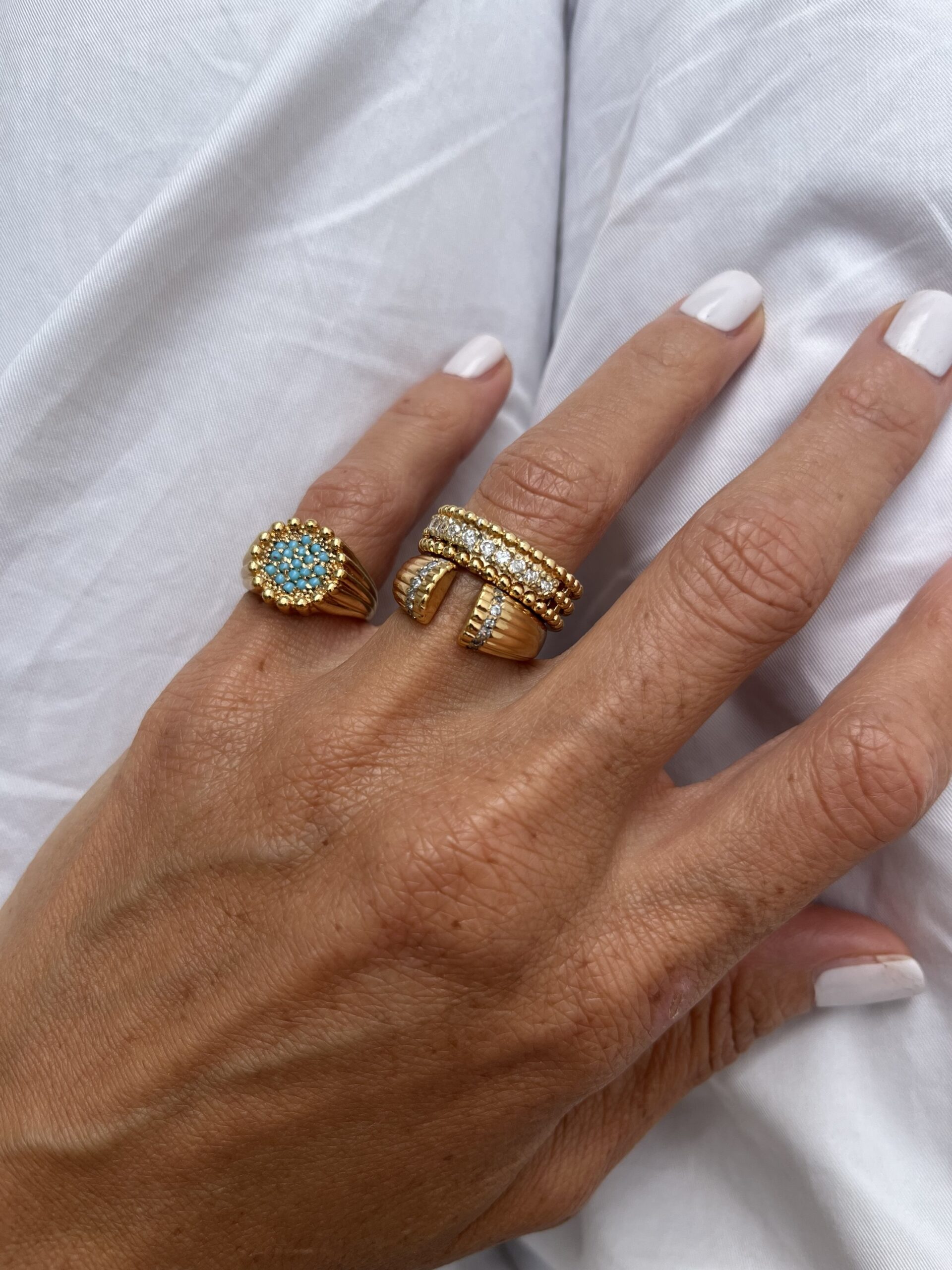 Bague Alizée en laiton plaqué or ornée de cristaux.